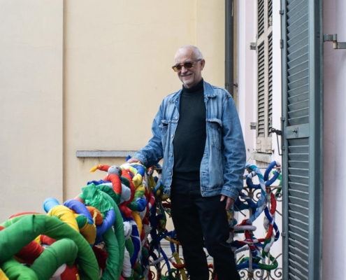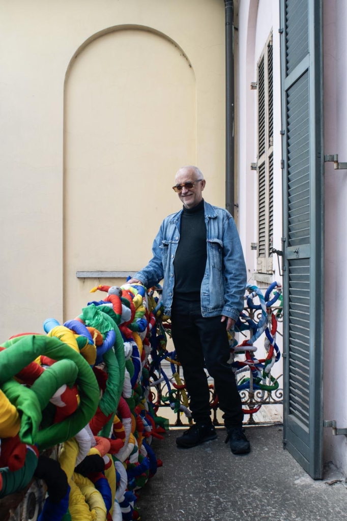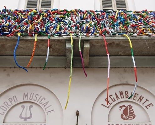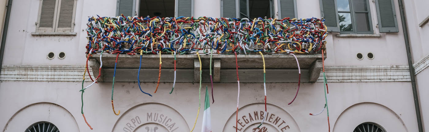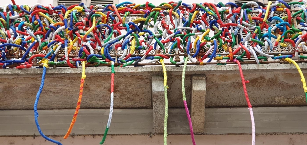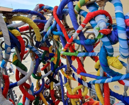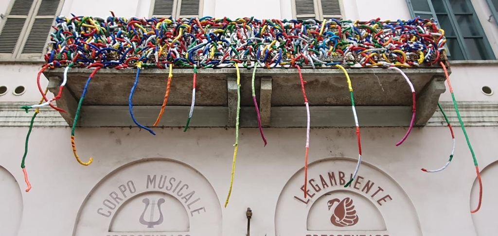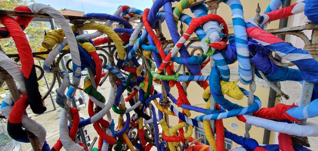 Angelo Caruso ha ideato questa opera “INTRECCI” con migliaia di bandiere.